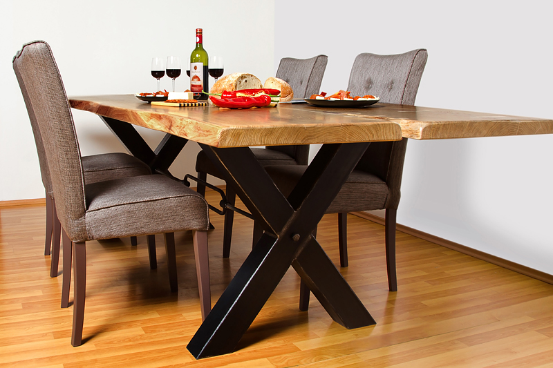 Stol blagovaonički rustik, s pločom od hrasta, metalne noge, vrhunske obrade i kvalitete.